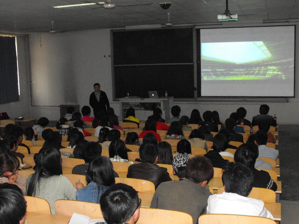 为了提高同学们的学习兴趣、增长同学们的专业知识,2013年3月22日下午14:20,艺术与传媒公司在未央校区教C201教室举办了主题为“探索者的成功之路”可视化设计讲座。本次讲座由水晶石数字科技有限公司的战扬老师主讲,公司2012届环艺专业和动画专业的全体员工聆听了此次讲座。