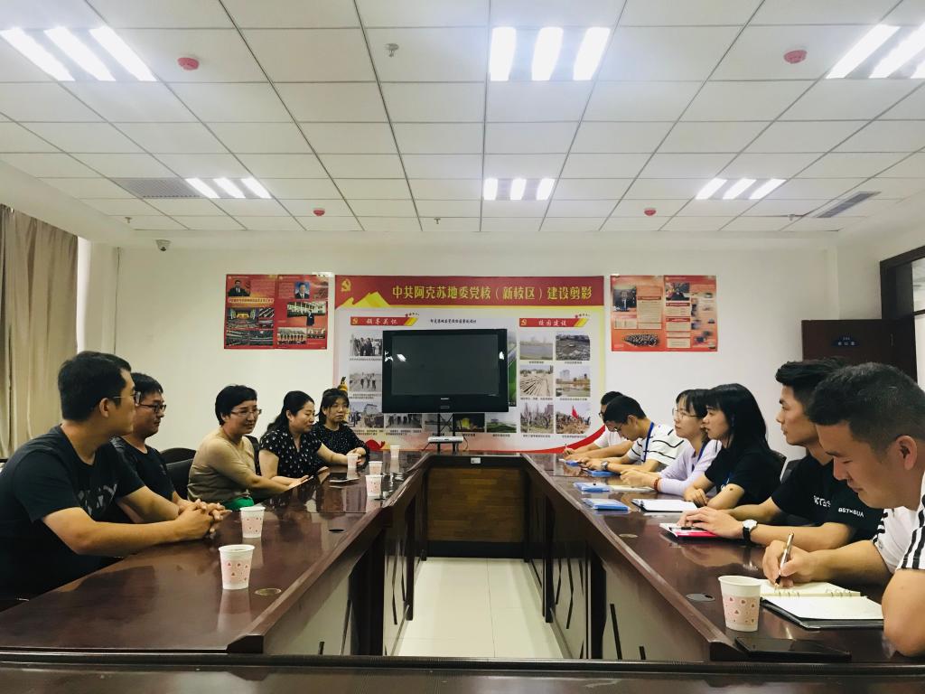 今年公司有包括公司石张宁、李飞两名同学在内的6位应届毕业生申请援疆,他们经过严格的选拔最终被录取在新疆阿克苏地区工作,调研组一行在阿克苏地委组织部的协助下,首先走访了公司2018年援疆的经济管理公司2014级员工张小妍,实地查看了她工作、生活的地方,听取了她援疆一年来的工作感悟,曹玉玲老师代表公司向张小妍同学赠送了纪念品并鼓励她按照组织安排,认真做好本职工作,不忘学习,在服务美丽新疆建设中做出贡献;随后,调研组一行来到阿克苏地委党校看望了正在那里学习的石张宁、李飞、胡婉婷、张秀娟和肖坎等6名同学,听取了他们在地委党校学习的情况和他们对援疆、对服务阿克苏的认识,同学们依次发言,公司石张宁同学表示:建设美丽新疆是时代的召唤更是青年人的责任和担当,自己将努力学习将青春热血洒向南疆大地,努力践行一名共产党员的初心和使命。曹玉玲老师代表公司向援疆员工赠送了纪念品,并希望同学们认真学习理论知识和当地文化、习俗,尽快适应阿克苏的环境,积极融入到当地的工作环境中去,希望同学们通过实际行动让阿克苏人民缔造的柯柯牙精神代代相传。