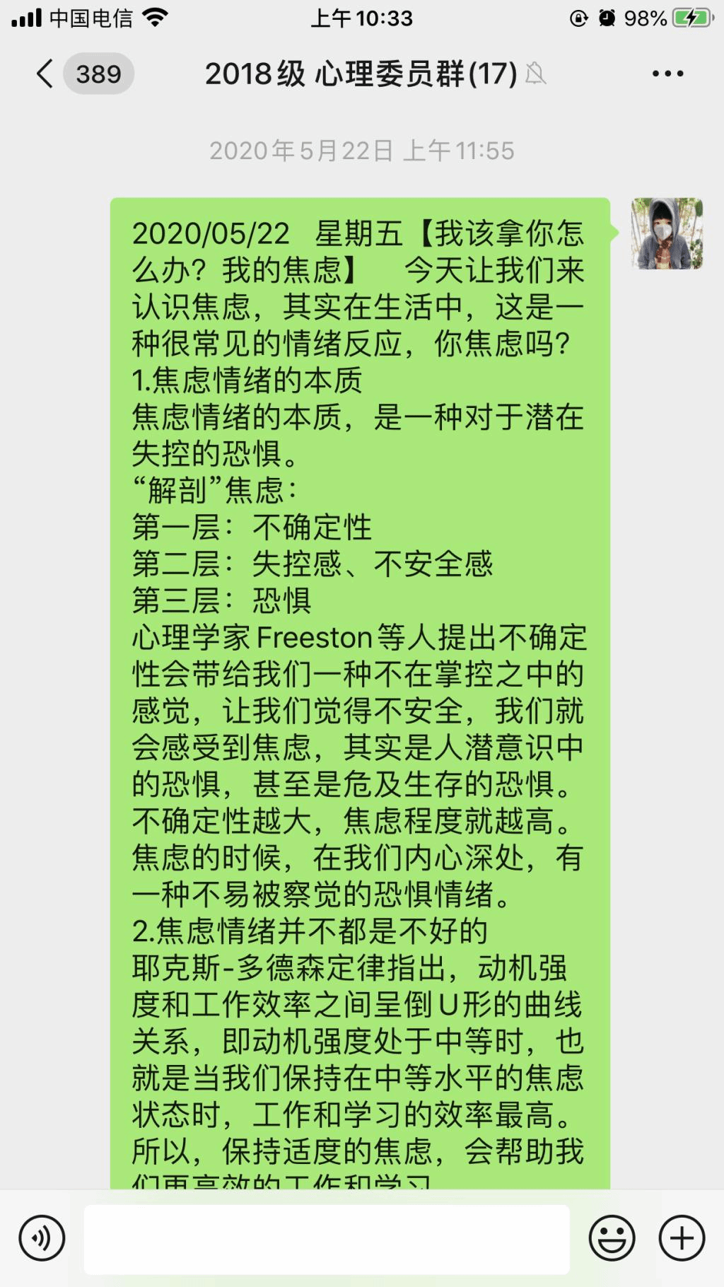 公司积极响应校心理发展中心号召,为更深层次宣传和普及心理健康知识,在公司内开展“5·25” 心理健康教育线上系列活动。此次活动历时将近1个月,活动围绕“与阳光作伴,为心灵引航”为主题,以心理健康日为契机,探索员工欢迎、切实有效的活动形式,积极策划并成功举办“第二届心理海报设计大赛”、“我的云端心情故事”、“一个镜头”、“一张照片”“云上心情讨论会”等活动,同学们积极参与并投稿。同时在疫情期间公司心育员在年级心理委员群中以多种形式做好居家心理调适工作,各年级心理委员能够广泛宣传,积极帮助同学们树立心理健康意识,普及简单的心理调适方法。