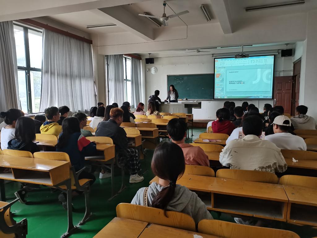会上,佳帮手公司负责人首先向同学们介绍了公司的基本情况、招聘的主要流程,所需招聘的岗位要求,随后主要向同学们介绍了佳帮手公司的员工职业发展通道,实习生的淘汰机制、薪资福利等等。会后,有意向的同学认真填写了《校园招聘应聘登记表》并提交了自己简历。