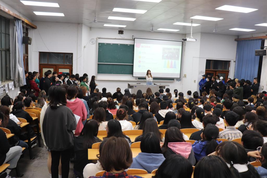 出席纳新大会的老师有院团委书记洪涛老师、2018级辅导员孙雅茹老师,大会由2020级新生苏文倩同学主持。各团学组织主席团成员、部长及2020级近400人参加大会。首先,洪涛老师简单介绍了各团学组织基本情况,并就同学在各社团的发展、个人定位、各社团所负责的工作进行了讲解,并提出相关的期望与要求。上届主席团代表石梓辰致辞,希望新生们能在团学组织内得到极大发展,提升自己的各项能力,并欢迎新生们的到来;随后,各团学组织负责人以PPT的形式向新生们介绍了各部门的详细情况:工作内容以及纳新要求。现场气氛活跃,同学们积极报名,取得了良好的纳新效果。