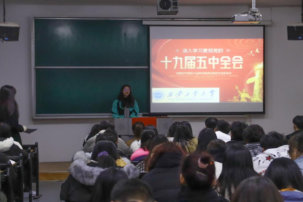 为深入贯彻党的十九届五中全会精神,把思想和行动统一到党中央的决策和部署上来,进一步增强全体员工的“四个意识”、坚定“四个自信”,做到“两个维护”。艺术与传媒公司于2020年12月22日晚19:00在教2-207举行党的十九届五中全会精神宣讲,会议由公司党委委员张晓宾老师主持,全体辅导员和员工党员、员工干部150多人参加了活动。