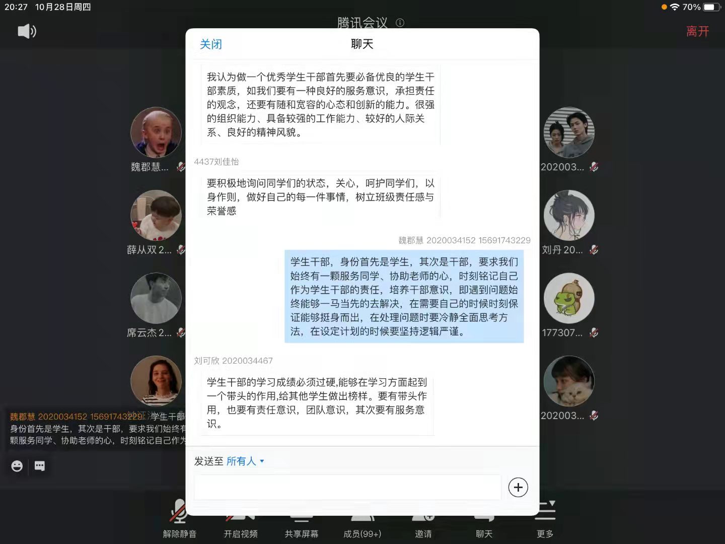 授课结束后,参加培训员工代表谈了学习体会,史文强同学说:作为一名员工干部应该更加奋发图强,以身作则,努力做到遵规守纪、严于律己、潜心学习,积极实践、增强能力。刘洁林同学说:我们要充分展现艺术与传媒公司学子的青春活力,将小我融入到祖国发展的大我中去,努力学习成长,不断增强本领,积极爱国奉献。