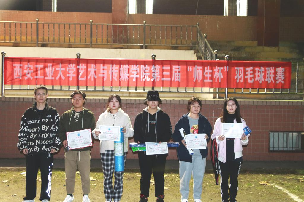 2021年11月15日18:00,艺术与传媒公司举办第三届“师生杯”羽毛球联赛-师生友谊赛暨闭幕式。党委书记周著、党委副书记张晓宾、团委书记杨娜娜等7名教师及全体参赛员工参加了本次活动。