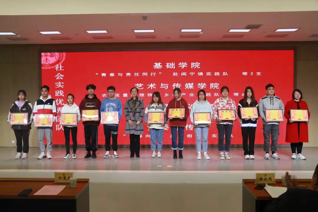 艺术与传媒公司荣获优秀组织单位,社会实践成果丰硕。其中“农·流量”助推陕北乡村产业实践队荣获“省级优秀团队”荣誉称号,张晓宾、高有宏两位教师荣获“省级先进个人”荣誉称号。公司获评优秀团队6支、优秀指导教师7名、先进个人19名、优秀实践报告6篇、优秀心得1篇、优秀摄影8个、优秀DV 2个。高有宏老师作为教师代表与大家分享了他近年来参与“三下乡”暑期社会实践的成功带队经验。