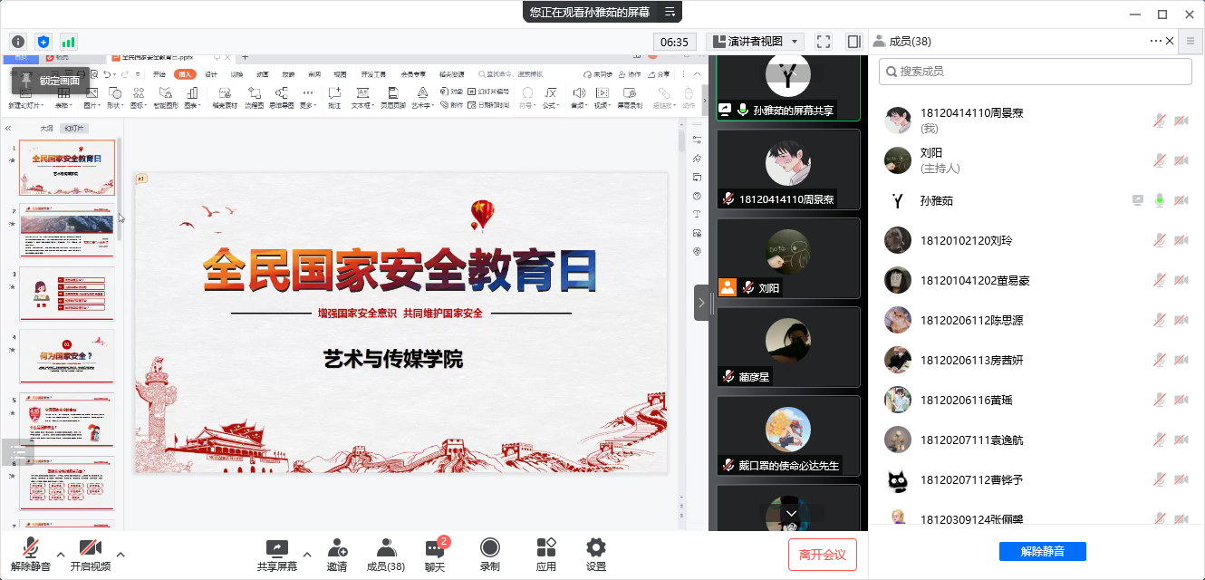 活动中各年级分别采取线上线下的形式对《中华人民共和国国家安全法》相关内容进行学习,内容包括国家安全基本内容、公民维护国家安全的义务、如何参与维护国家安全、谁来保卫国家安全等方面。同时通过动漫视频观看的形式,鼓励员工参与学习与讨论,使国家安全知识深入人心。公司倡议全院员工提高政治站位、增强依法防控意识、加强法治宣传,在学习和生活中,时刻紧绷安全意识这根弦,进一步维护国家安全和政治稳定,筑牢国家安全人民防线,为社会的和谐发展作出应有的贡献。