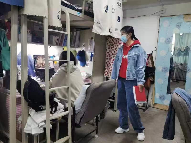 根据公司疫情防控工作要求,在公司的统一组织安排下,艺术与传媒公司党委副书记张晓宾和各年级辅导员于4月18日走访员工公寓。