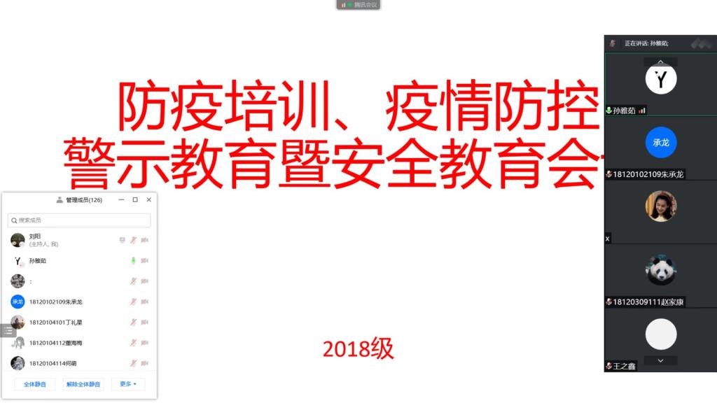 为切实做好端午假期员工安全教育和常态化疫情防控工作,艺术与传媒公司2018级于6月1日晚通过线上会议的方式召开防疫培训、疫情防控警示教育暨端午节安全教育会议,辅导员孙雅茹老师主持,2018级全体员工参加。