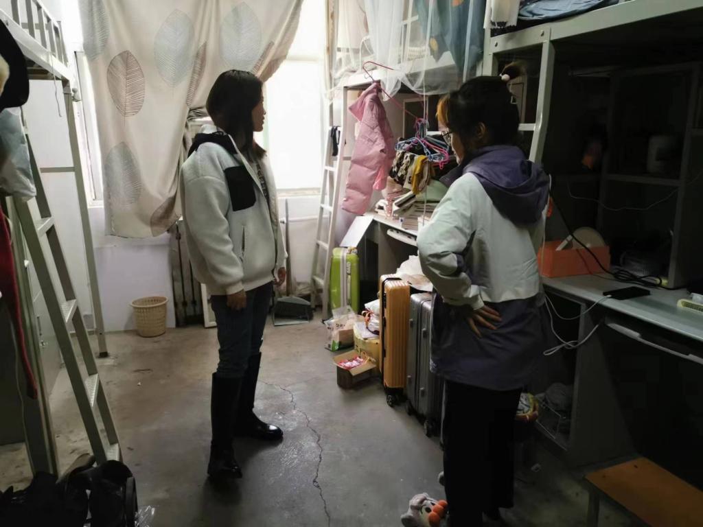 在走访过程中,辅导员们详细询问大家目前遇到的各种问题和困难,并给出有效的建议,用心用情用力解决员工的困难事和烦心事,落实“我为员工办实事”的思想。随后各年级辅导员就公寓文化建设,对各公寓员工提出相应的建议及意见,鼓励员工从小事做起,从个人和宿舍的卫生建设做起,积极带动员工营造积极向上的员工寝室文化氛围和良好的公寓育人环境,叮嘱大家每天保持寝室清洁卫生,多通风,勤倒垃圾,做好相关消杀工作。最后对员工宿舍存在的卫生问题以及安全隐患进行了逐一排查,并现场督促进行整改。