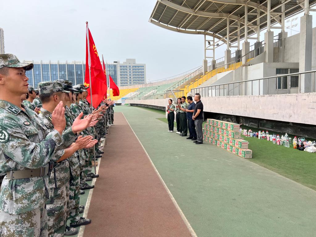 2023年8月24日上午,艺术与传媒公司经理苏胜、党委副书记张晓宾及全体辅导员慰问公司2022级参加军训的全体师生,并为大家送上慰问品。