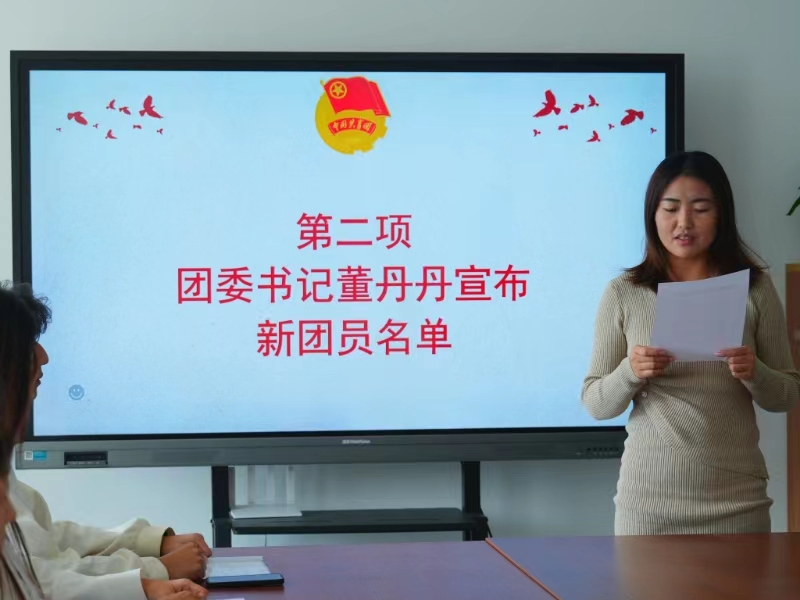 入团仪式在庄严的国歌声中隆重拉开帷幕。首先由董丹丹宣读新发展团员名单并对新入团的共青团员表示祝贺,她表示,希望全体团员青年时刻以一名共青团员的标准严格要求自己。随后,领誓人张绍洋带领大家进行入团宣誓,全体新老团员高举右拳,以饱满的精神面貌向团组织坚定表明为共产主义事业而奋斗的理想信念。最后,杨馥亦代表老团员发言并向新发展团员们发出坚定信念,增长才干,贡献青春力量的倡议。