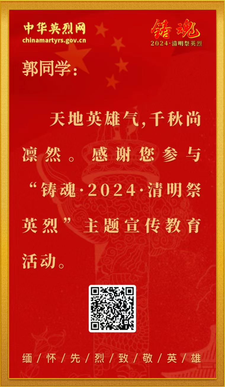 4月2日,公司组织包括研究生和本科生在内的党员、团员、员工骨干等44人在中华英烈网参与“铸魂·2024清明祭英烈”网上祭扫活动。同学们在网上观看宣传片并向李大钊、邱少云、陈延年等烈士敬献花篮、鞠躬缅怀。