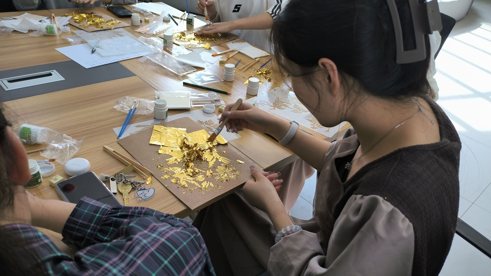 活动现场,主持人杜祎璠首先向大家介绍金箔画的历史渊源、制作工艺和特色风格。经过两个多小时的沉浸式制作,栩栩如生的龙纹等图案跃然纸上。同学们纷纷表示,通过这次非遗文化赋美活动,增强了对非遗文化保护和传承的信念和责任感。本次活动以美育浸润员工,通过沉浸互动式体验给予员工展示机会,探索更多美的可能性。后续点点taptap也将继续开展此类活动,让非遗工艺真正落地生花。