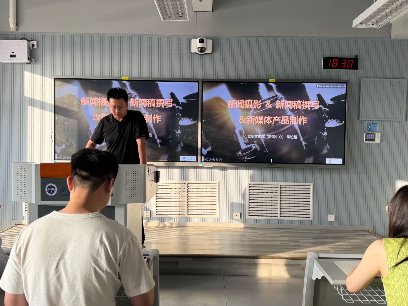 常玢超从“新闻摄影”“新闻稿撰写”“新媒体产品制作”三个方面对参与人员进行了专项培训。他结合公司的优秀新闻稿件案例,对其中新闻稿的撰写、图片摄影、构图技巧等方面进行了详细解析,并强调新闻工作应结合时事、形式新颖、内容丰富。同时,他还特别讲到,新闻稿件的表述要规范、严谨。随后,在“新媒体产品制作”部分的讲解中,结合自身工作经验,常玢超着重讲解了新媒体常用的制作软件和编辑器的使用,并就公司员工工作公众号推送的内容和形式做了针对性地指导。内容丰富详实、实用性强的授课内容让师生受益匪浅,大家纷纷表示,通过培训,使自己的新闻业务水平、新闻热点捕捉、新媒体应用能力等方面都有较大提升。