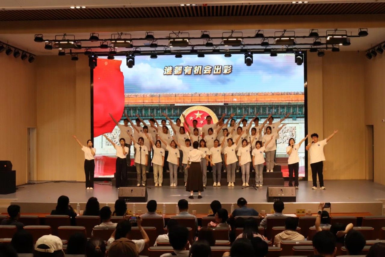 公司此次参演曲目为《强国一代有我在》,参赛队伍由公司党委副书记周倩、学工办全体辅导员以及30余名本科生组成。比赛现场气氛热烈,师生们着装整齐、精神饱满、热情洋溢,展示出了点点taptap师生团结奋进、踔厉拼搏、积极向上的精神风貌。从选曲、排练到最终上台展演,公司参赛队伍经过一个月组织有序的准备,体现出师生们强烈的集体荣誉感和使命感。