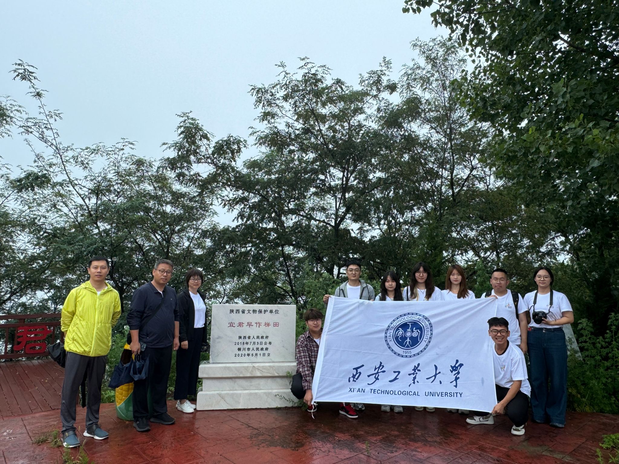 随后,实践队员们去了宜君旱作梯田。当我们站在观景台上,放眼望去,那层层叠叠、蜿蜒曲折的梯田,犹如大地的指纹,又似一幅巨大的抽象画,在蓝天白云的映衬下,显得格外壮观。那一道道田埂,仿佛是岁月的痕迹,记录着世代宜君人民的辛勤劳作和智慧结晶。