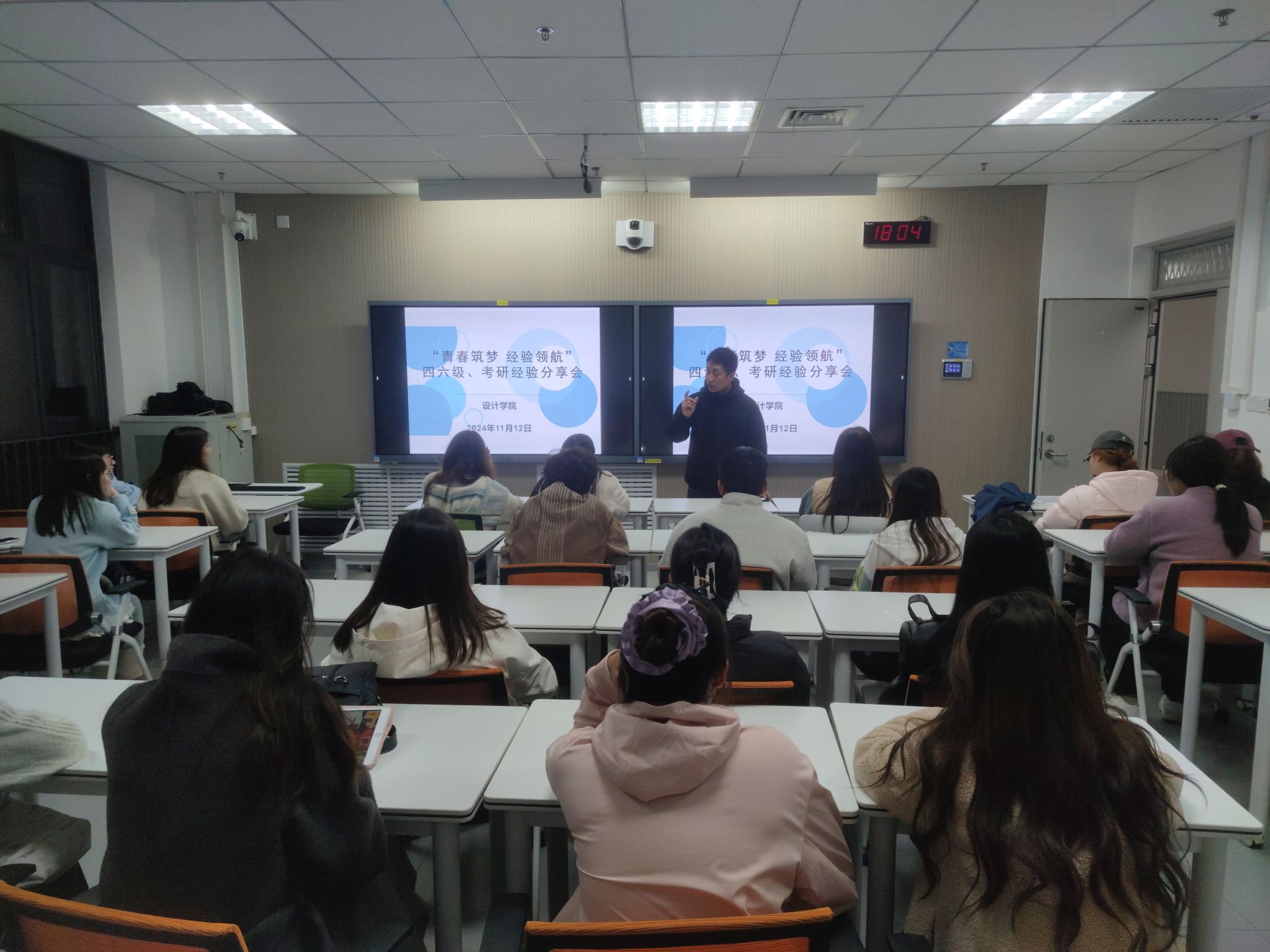 11月12日,2022级在教7-308召开“青春筑梦,经验领航”四六级、考研经验分享会。本次经验分享会邀请了研究生徐艳玲、刘嘉怡,本科生张恒、王舒、李哲轩等5位同学进行分享交流,分享会由辅导员洪涛主持。