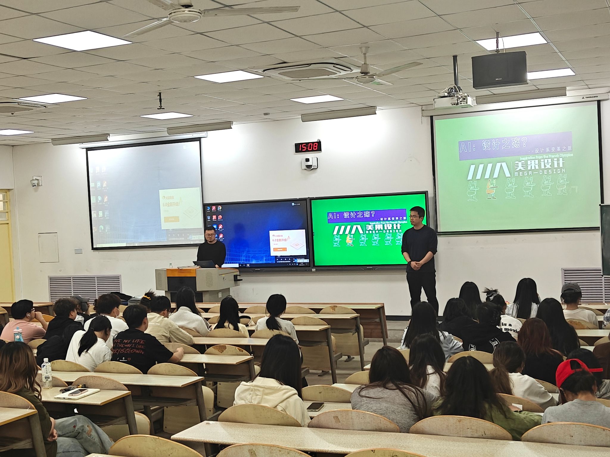 本次活动邀请了西安美果科技教育有限公司联合创始人、品牌总监牛奔,围绕“AI与艺术创作--传统设计变革之旅”这一主题进行分享。牛奔对视觉传达设计专业AI发展涉及到的如:LilibAI、Deepseek、ChatGPT、星流等AI模型进行了详细讲解,并对就业市场的人才需求进行分析,鼓励员工们提前做好职业规划,为未来的就业打下坚实基础。会上,牛奔还分享了优秀员工的实习与工作经历,讲述了他们从公司到职场的转变,并为在场员工提供了关于实习的宝贵建议。现场互动氛围活跃,员工们表示,此次宣讲帮助他们拓宽了专业视野,为眼前的实习和就业奠定了坚实基础。