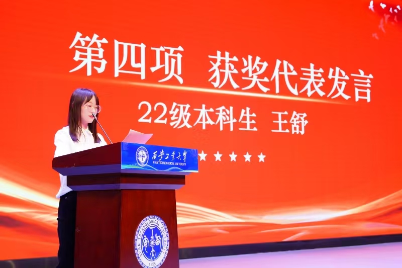 仪式后,获奖代表2022级本科生王舒和2022级研究生孙田昱分别发言。他们分享了自己的学习经验、成长感悟以及对未来的展望,鼓励同学们珍惜大学时光,努力学习,积极参与实践活动,不断提升专业素养和创新能力。