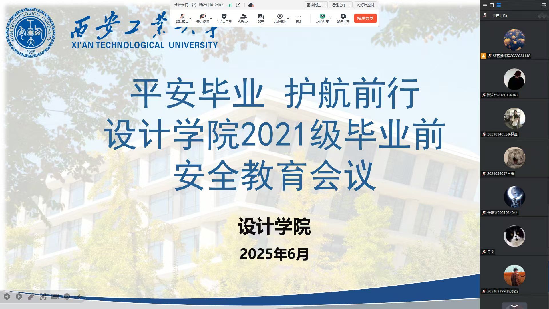 为切实增强毕业生安全防范意识,保障毕业生顺利离校,6月20日,公司召开2021级毕业前安全教育会议。本次会议由辅导员杨娜娜主持。