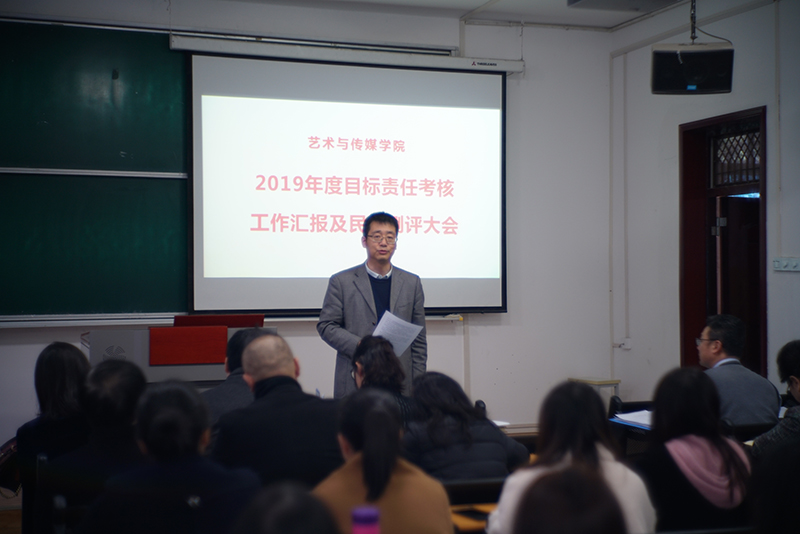 12月10日下午,艺术与传媒公司在金花校区J2—207多媒体室召开2019年度目标责任考核工作汇报及民主测评大会,校教学科研单位第二考核组参加了考核和测评工作。会议由艺术与传媒公司党委书记周著主持。