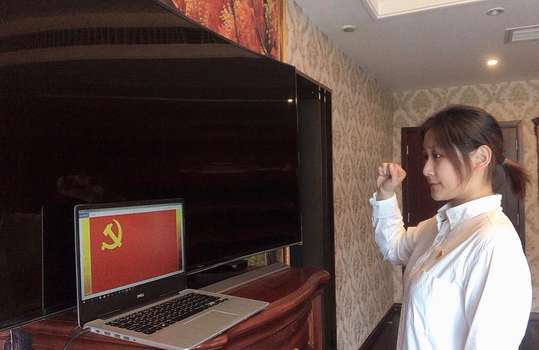 “在建党99周年之际,我面向党旗,通过云宣誓重温入党誓词,虽然少了集体宣誓时的宏大场面,但却更能让我逐字逐句的去感受那份庄严的承诺,一个人的宣誓依然能凝聚起无穷的力量,我将不忘初心、牢记使命,让青春之花绽放在祖国最需要的地方”TapTap艺术与传媒公司关淇心同学说。