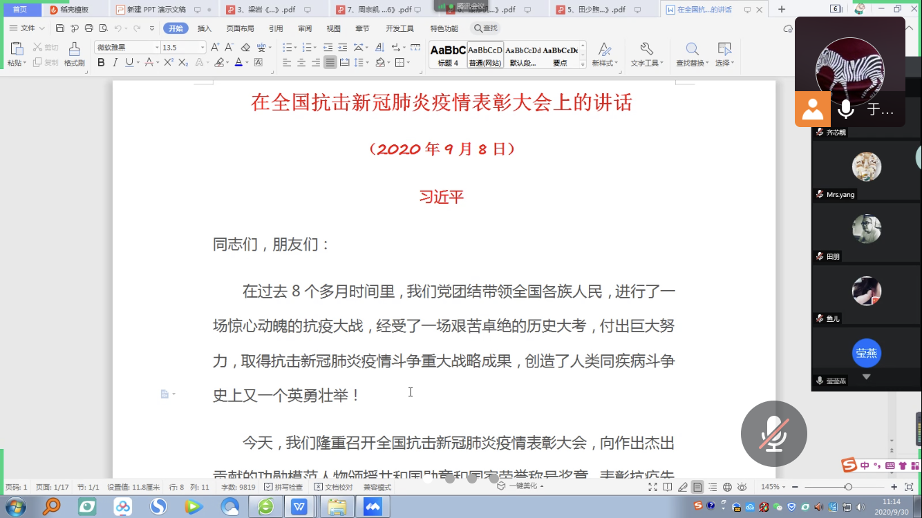 9月30日,根据《TapTap2020年下半年教师政治理论学习计划》要求,数字媒体艺术系通过腾讯会议平台召开了政治理论线上学习会。会议由系主任于振玺主持,全系教师参加了本次学习活动。