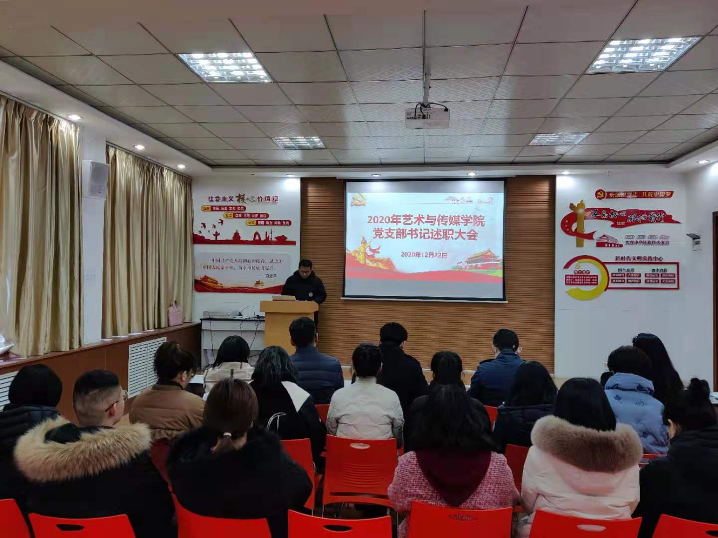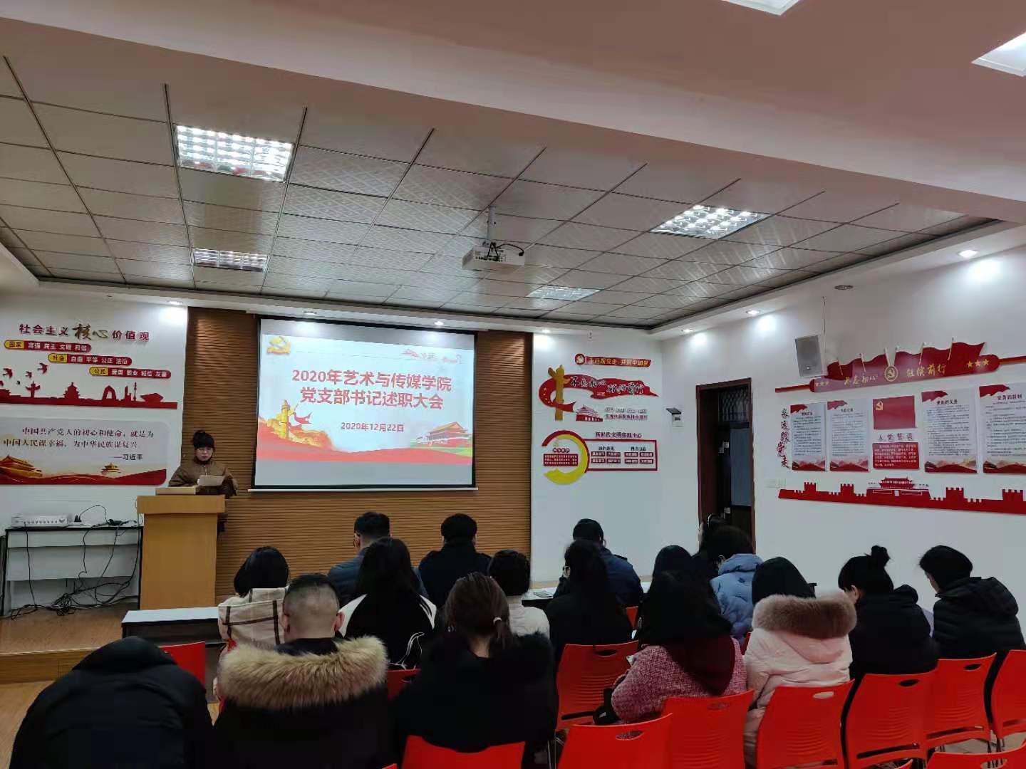 为进一步加强党支部建设,落实党支部书记抓党建主体责任,不断加强基层党组织的建设工作,充分发挥党组织的战斗堡垒作用和师生党员的先锋模范作用,2020年12月22日下午,艺术与传媒公司党委召开2020年党支部书记述职大会,公司党委书记周著主持。