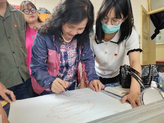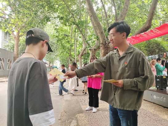 党员通过在校园内发心理健康宣传页,宣传心理健康教育知识,帮助同学们更科学地认识心理咨询;利用专业特长与公寓管理员共同绘画笑脸,与公寓管理员积极探讨心理健康的重要性。通过活动营造校园积极向上的校园氛围,实实际际关注身边人,切实将党史学习教育成果转化在为员工服务的具体行动上。