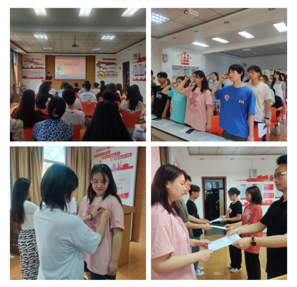 活动伊始,杨娜娜老师对习近平总书记“七一”重要讲话的重大意义、主要内容和丰富内涵进行了深刻阐述,并深入解读中国共产党百年奋斗的光辉历程、伟大成就、宝贵经验和实践启示。随后,“老党员”带领“新党员”重温入党誓词,“老党员”为“新党员”佩戴党徽并满怀激情和感恩,在信笺上郑重写下饱含深情、发自肺腑的“心里话”,老党员们表态会时刻关注新党员们的思想和学习状态,发现问题时主动伸出援手,适时搭把手,给予组织关爱,增强新党员的组织归属感和安全感,将党组织作为家一样热爱,真正做好老党员传帮带好新党员。党员同志们纷纷表示要以实现中华民族伟大复兴为己任,增强做中国人的志气、骨气、底气,将伟大建党精神发扬光大,以实际行动践行“请党放心,强国有我”的青春誓言。