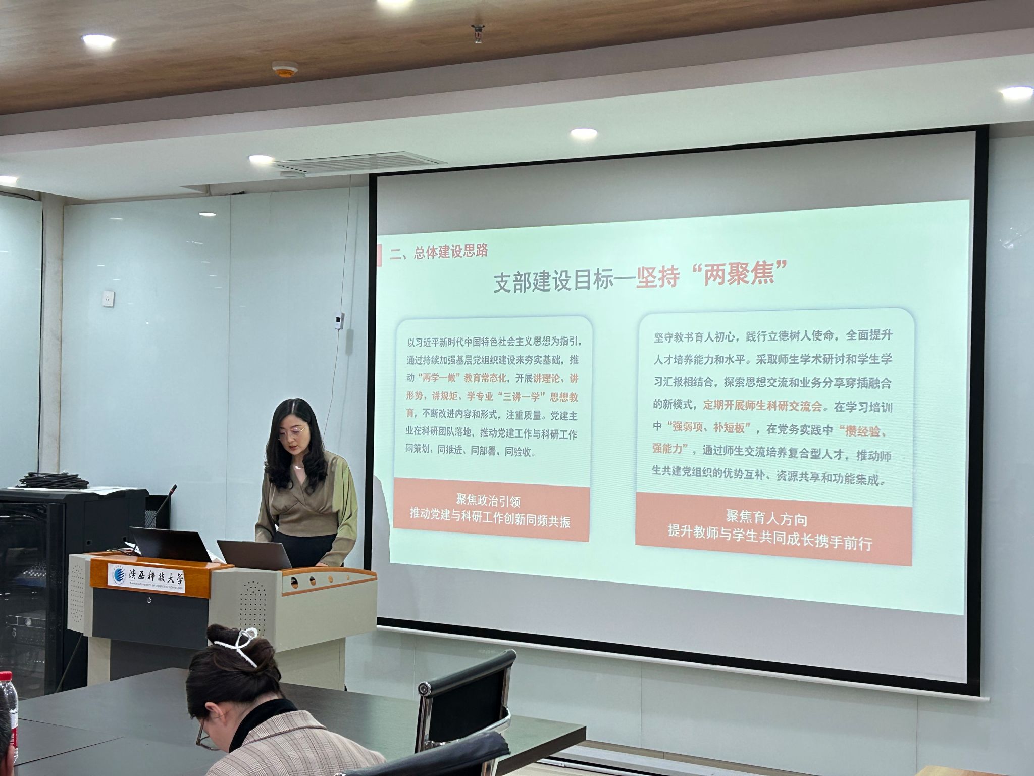 在座谈交流中,刘和林对公司调研交流教师表示热烈欢迎,并从党建工作与业务工作相结合互融互促、以科研团队为主进行师生支部共建、党建引领的成果产出与导向等方面介绍了公司党建工作思路;陕西科技大学设计与艺术公司教工党支部书记赵敏婷以“打造三型党支部 推动党建业务深融互促进”为题详细介绍了样板党支部建设的特色经验与做法。