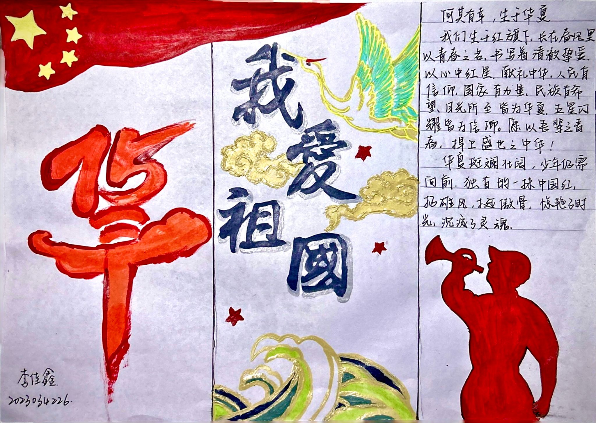 活动以手抄报、板绘或者手绘、硬笔或者软笔书法、主题信件等多种形式为载体,用以描绘和书写自己心中的祖国,第六十九期入党积极分子培训班学员们清晰地展现了祖国日新月异的变化和繁荣昌盛景象,表达出了对祖国的热爱和赞美之情。大家纷纷表示,通过参加这次活动,不仅对祖国有了更加全面深入的了解,也更增强了民族自豪感和责任感,对自己是一次深刻的思想洗礼,更是一次心灵的触动与成长的契机,在今后的学习生活中,将不忘初心,牢记使命,继续努力学习,积极实践,为实现中华民族的伟大复兴贡献自己的青春力量。