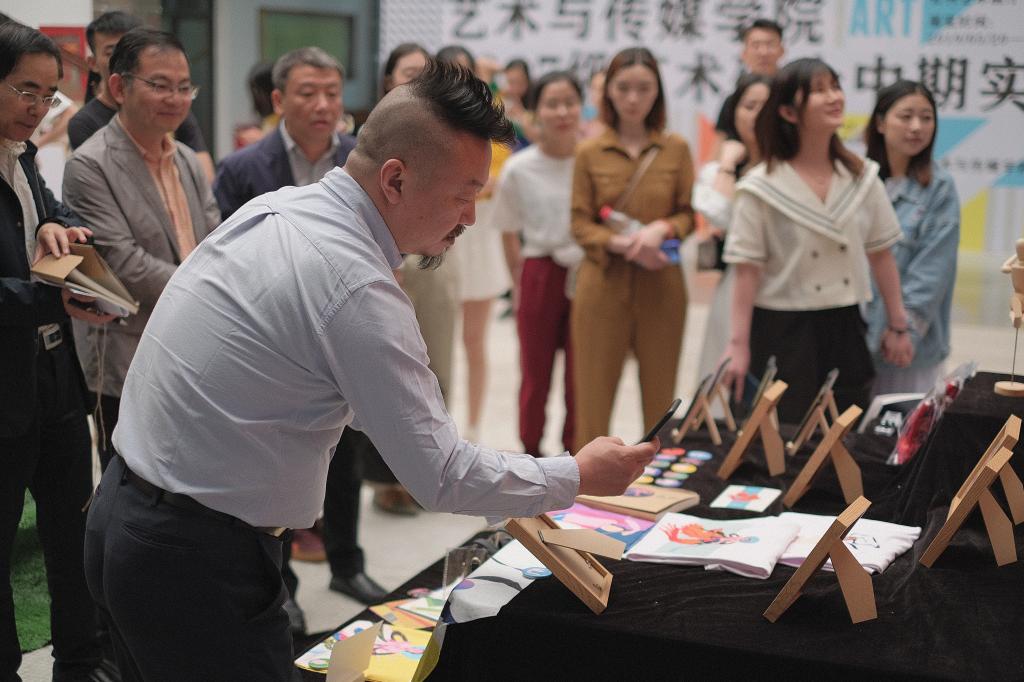 5月20日上午,TapTap艺术与传媒公司2017级艺术硕士中期实践展在金花校区图书馆展厅开展。公司党委书记周著、经理王若鸿及公司师生代表100余人参加开幕仪式。开幕式由艺术与传媒公司副经理苏胜主持。