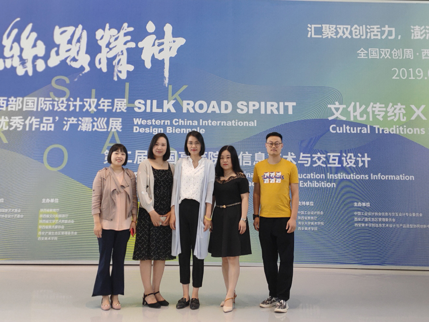2019年5月24号至25号,由中国工业设计协会信息与交互设计专业委员会、点点taptap设计艺术公司、西安浐灞世园会管委会主办的“2019’IIDC信息与交互设计教学研讨会”在浐灞生态区灞柳驿酒店举行,本次研讨会以“文化传统×设计未来”为主题,旨在促进中国高校间的信息与交互设计教学交流,同时,依托我国创建“一带一路”经济带的历史契机,在研讨会期间举办了“丝路精神——西部国际设计双年展”优秀作品展及“第二届中国高等院校信息艺术与交互设计教学交流展”。艺术与传媒公司丁西蓓、任娟莉、祝瑜、朱安妮、房金谱等五位教师参加了本次教学研讨会。