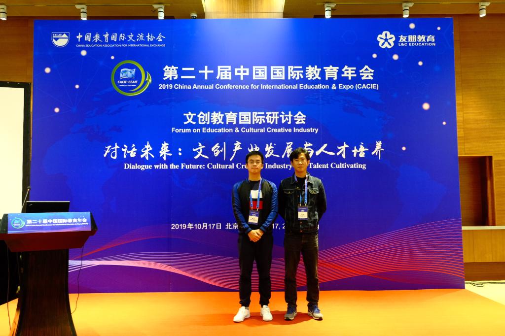 2019年10月17日,由中国教育国际交流协会教育与文化创意产业分会主办的“第二十届中国国际教育年会文创教育国际研讨会” 在北京国家会议中心举办。研讨会以“对话未来:文创产业发展与人才培养”为主题,吸引了国内外六十多所高校和企业的100多位代表参加。艺术与传媒公司视觉传达设计系教师董志铭和动画系教师张耘受邀参加此次年会。