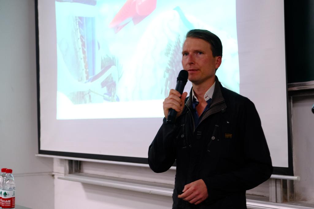 讲座中,Cunningham先生聚焦全球化概念设计,从关注设计的基本原则开始;通过对汽车、无人机等设计项目的详细讲解,将交通工具设计、工业设计、视觉特效设计以及概念设计进行有机结合,诠释了当代设计的重要性,并结合自己参与设计的科幻电影中交通工具的设计流程,介绍如何完成整项设计任务;最后,Cunningham先生结合代表作《哥斯拉2》《海王》等影视作品中的具体设计内容,同现场师生就全球化概念设计趋势等问题进行了积极热烈的互动交流。
