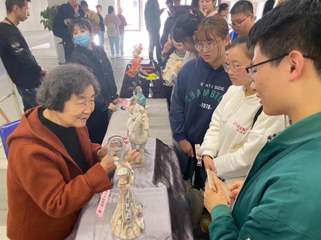 现场展示结束后,参会师生在图书馆西侧大厅与非遗传承老师进行了近距离的非遗文化的互动体验。