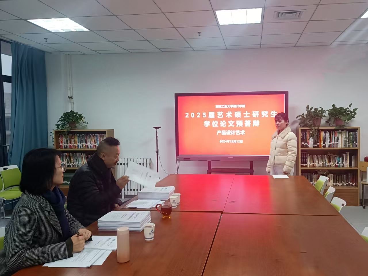 2024年12月12日,2025届艺术硕士研究生学位论文预答辩在未央校区教7楼609室、617室举行,共分为环境设计艺术及视觉设计艺术、产品设计艺术两个组,有38位艺术硕士研究生参加。