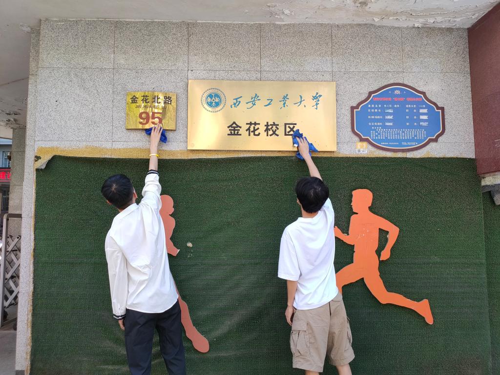 义务劳动,留一缕清香。全体毕业生党员在离校之际,自发擦拭清理金花校区西门校牌及校园内宣传橱窗,在劳动过程中,同志们充分发挥不怕苦、不怕累的精神,美化了校园环境,为绿色校园留下美丽背影。