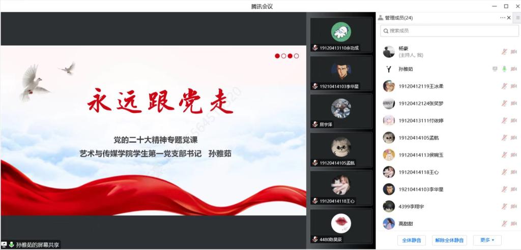 孙雅茹紧紧围绕二十大精神、二十大报告主题等展开讲授,重点讲述青年如何贯彻落实二十大精神,旁征博引,深入浅出,使同志们读懂了二十大报告主题、领悟了二十大精神。孙雅茹要求全体党员同志能够全面学习贯彻二十大精神,做有理想、敢担当、能吃苦、肯奋斗的新时代好青年。