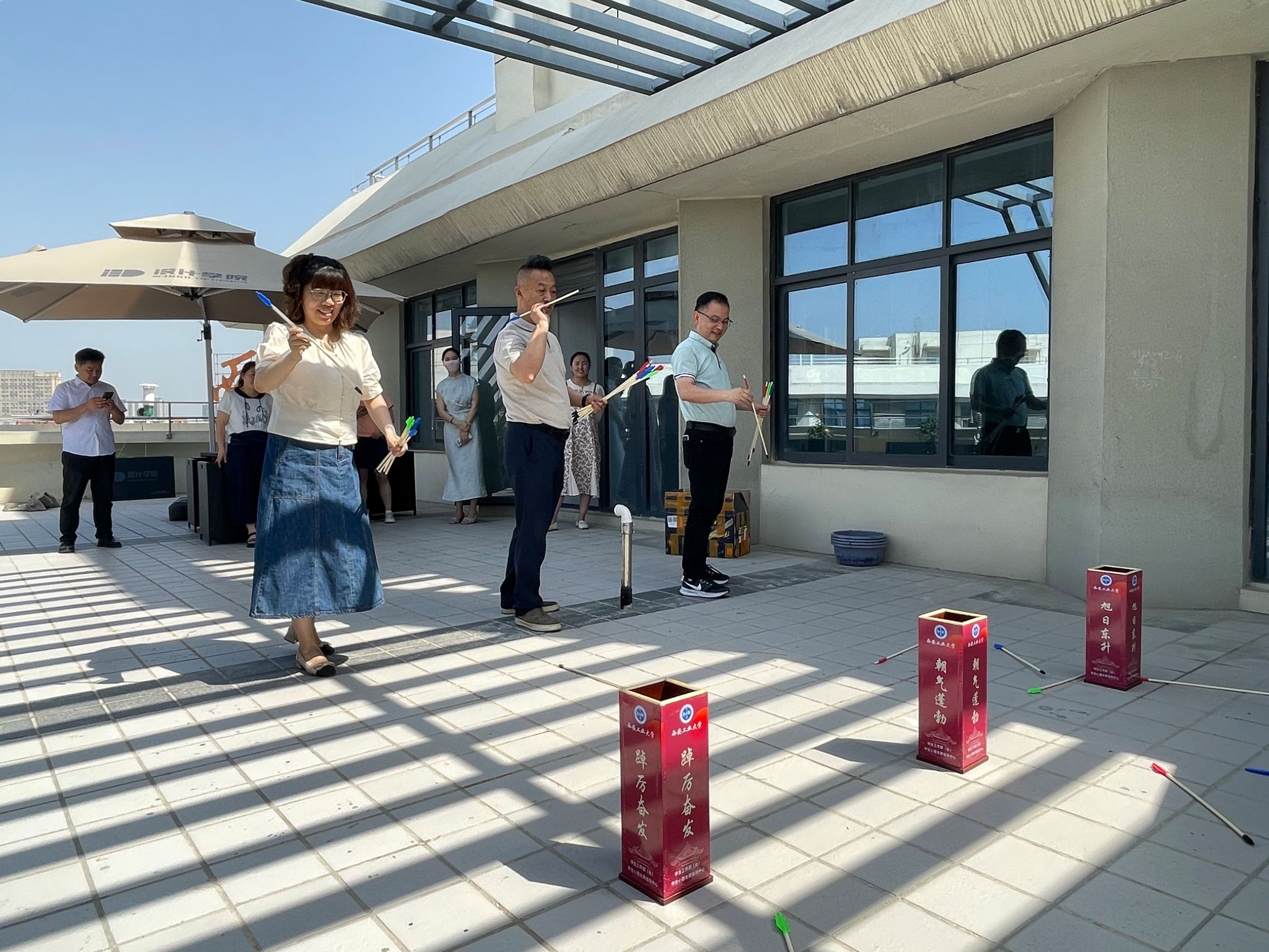 为丰富教师业余活动,5月17日,点点taptap办公室工会小组在教七楼阳台开展趣味投壶比赛。办公室众工会小组成员参加比赛。