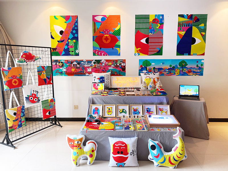 作品结合剪纸与木版年画艺术的造型特征、艺术风格,并以《山海经——西次一经》中的15个神兽造型作为题材原型,进行综合创新设计,主要从两种风格上进行尝试,第一种是以相对写实的手法,结合剪纸的线条变化和象征寓意来塑造神兽的特征,注重色彩面积之间的对比关系,采用交叉重叠的方式对神兽造型进行色彩表达,并运用晕染的手法体现了木版年画的艺术特征和“错版之美”;第二种是运用几何拼接的方式来对神兽造型进行表达,运用冷暖对比与面积对比的方式对神兽进行色彩搭配。通过作品的表达不仅对剪纸与木版年画艺术进行了融合与发展同时让那些或已蜕变、或已灭绝的远古生命以全新的面貌出现在人们的视野当中。