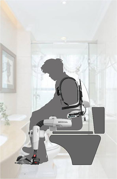 下肢康复外骨骼机器人将造型设计与功能系统相结合,对造型进行合理布局,兼具安全感和轻便感;在贴近人体背部的部位,避免了背部与背包的直接接触,背负与腰带、肩带、腿束采用软质橡胶和尼龙材质的设计,兼具支撑的柔和感和舒适感。在形态上,运用几何面及曲线对动力背包进行整体造型及模块进行分割,突出整体外观设计的简洁感;在分模方式上运用导角处理方式提升整体的精致感。在材质上,选用简洁素净、有质感的整体设计,兼具科技感和耐用感。在色彩上,整体色彩运用以白灰为基调的浅色系,体现出沉稳、柔和的感觉,让病患在使用时,体会到设计者的贴心和其中所传达的人文关怀,更有信心完成康复训练。