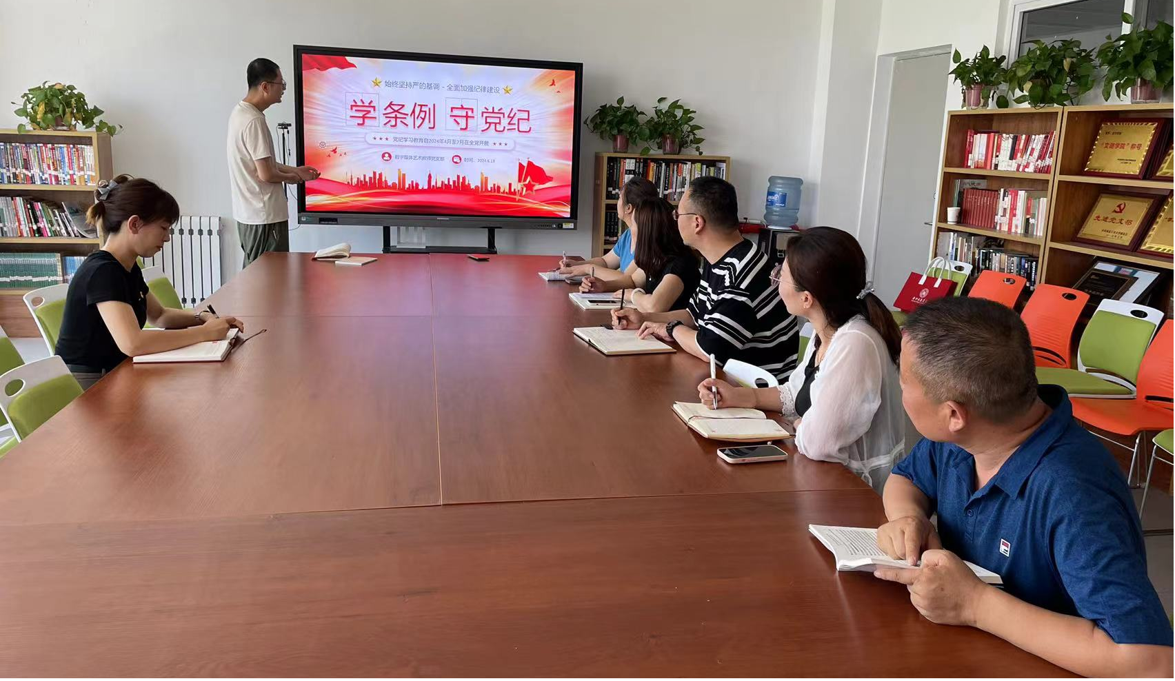 6月14日,数字媒体艺术教师党支部以党课的形式开展了一场深入的党纪学习教育专题党课,党委副书记、纪委书记周倩参加,支部书记任怀琎主讲