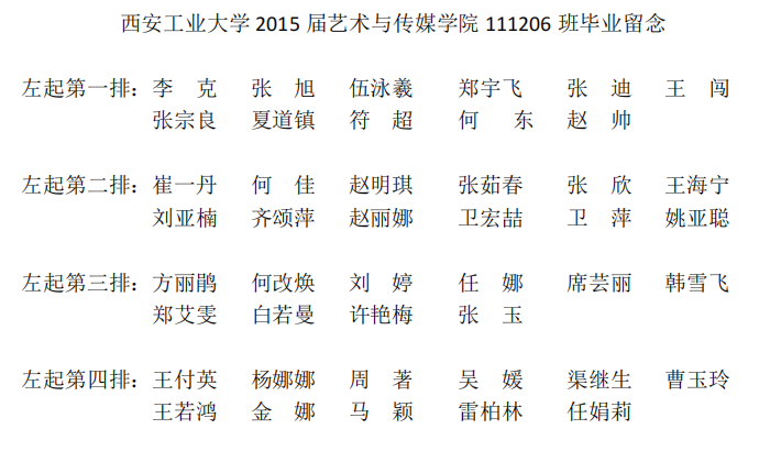 2015届艺术与传媒公司111206班毕业合影