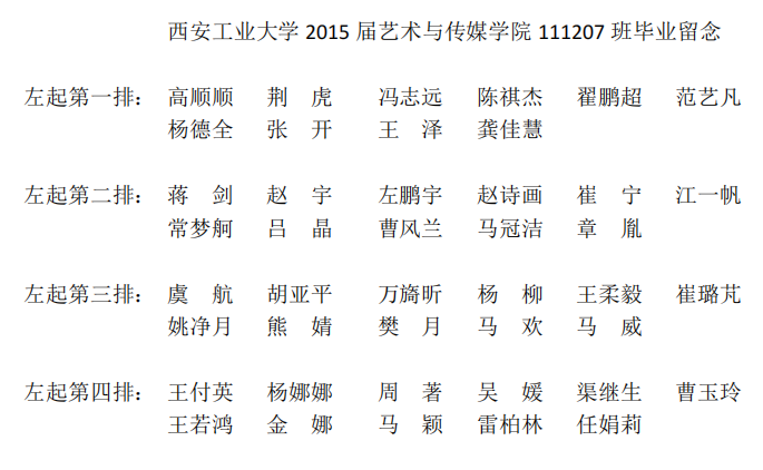 2015届艺术与传媒公司111207班毕业合影