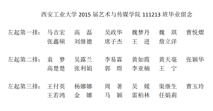 2015届艺术与传媒公司111213班毕业合影