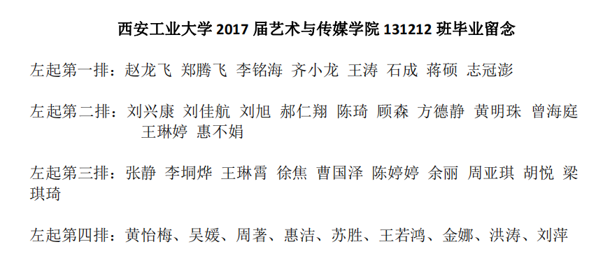 2017届艺术与传媒公司131212班毕业合影